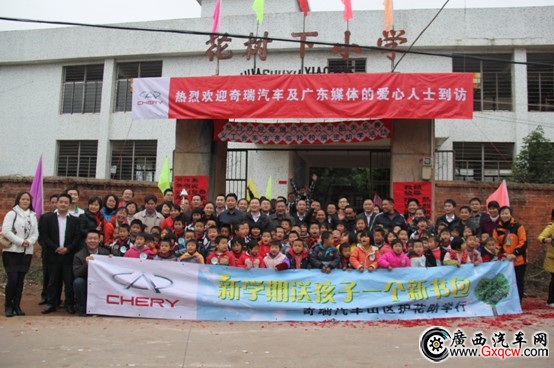 2012年12月12日,這是一個幸福、吉祥的日子,以“新學(xué)期送孩子一個新書包”為主題的奇瑞汽車粵北山區(qū)助學(xué)活動如期舉行。本次活動由奇瑞汽車華南大區(qū)聯(lián)合華南全體銷售服務(wù)商舉辦,同時得到了韶關(guān)市社會公益組織“韶關(guān)義工會”的大力支持。韶關(guān)南雄市花樹下小學(xué)近百名師生、奇瑞汽車新老客戶代表、奇瑞公司代表、奇瑞廣東省各銷售服務(wù)商代表、以及廣東省主流媒體記者代表近200人30臺車共同參與了本次活動。