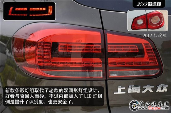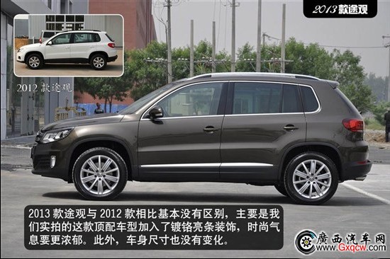 從市場表現(xiàn)來看,途觀已然成為SUV車型中無可爭議的標桿產品,自上市到現(xiàn)在一直處于加價提車的狀態(tài),銷量表現(xiàn)較為出色。途觀作為大眾的主打SUV車型,處于目前最火爆的緊湊級SUV市場必然成為眾多車型爭相趕超的對象,而保持及時更新非常有必要。因此2013款途觀隨之到來。新車將在6月7日正式上市,在上市前夕我們首先來看看它到底有哪些改變。