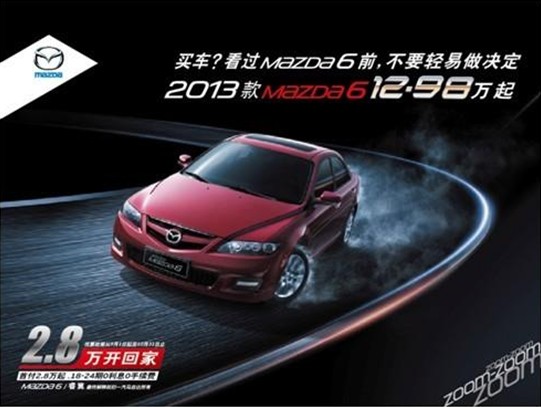 4種金融購車方案,最低首付2.8萬,2013款Mazda6的“殺手锏”