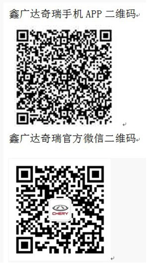 成功掃描下列二維碼并下載手機(jī)APP,即可到鑫廣達(dá)奇瑞展廳免費(fèi)領(lǐng)紀(jì)念禮品!
