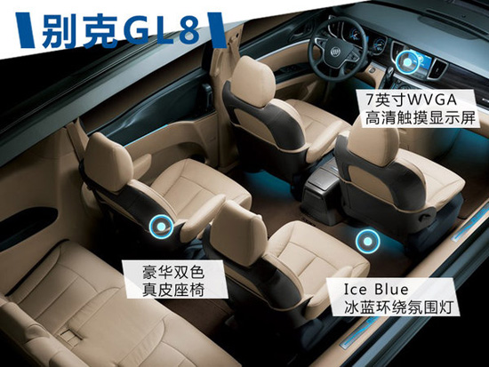 別克GL8作為首款國產中高檔MPV,也有著豐富的內部配置。冰藍色的氛圍燈、安吉星、7 英寸導航觸摸屏、雙天窗和后排10.2 英寸液晶屏等。但這些高級配置多集中在高配車型,想要全部擁有,價格自然也自然水漲船高。