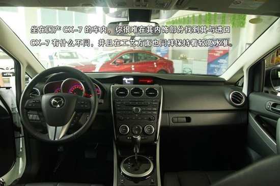 外觀方面,一汽馬自達國產CX-7造型基本與進口版車型保持一致,這也是一汽馬自達的首款國產SUV車型。尺寸方面,新車長寬高分別為4705/1872/1645mm,軸距為2750mm,定位于中型SUV。在國產馬自達CX-7的身上,沒有任何新世代的“魂動”設計元素,依舊是上代的大嘴微笑前臉。