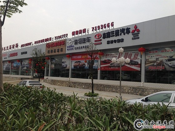 4S店一般是獨(dú)棟建筑,門口豎立著商標(biāo)。