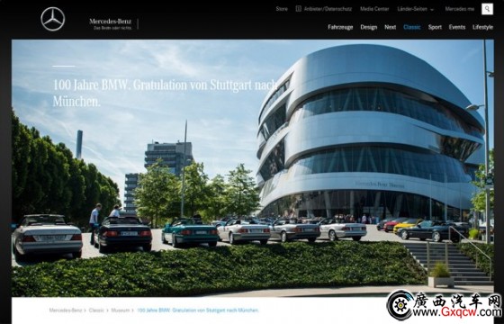 最早的故事起源應(yīng)該是這樣的,上周奔馳汽車在自己官網(wǎng)的博物館頁面登出信息,表示為祝賀寶馬成立100周年,奔馳博物館將于3月8日-12日對寶馬員工免費開放,同時駕駛寶馬車的參觀者還可以免費把車停到奔馳博物館門前最好的車位中。