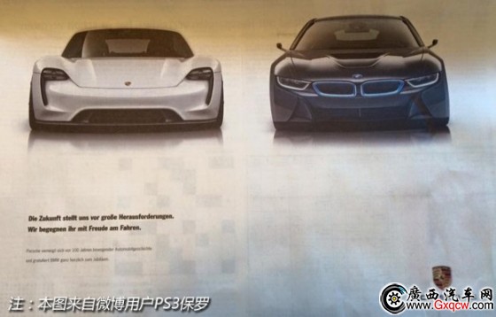 下面再來看個官方版本的祝福:今天保時捷在德國買下一些報紙的版面為寶馬慶生,圖片中并排放置了自家的電動概念車Mission E和寶馬i8,下方文字寫道:“未來意味著挑戰(zhàn),我們與極致駕駛樂趣同行!