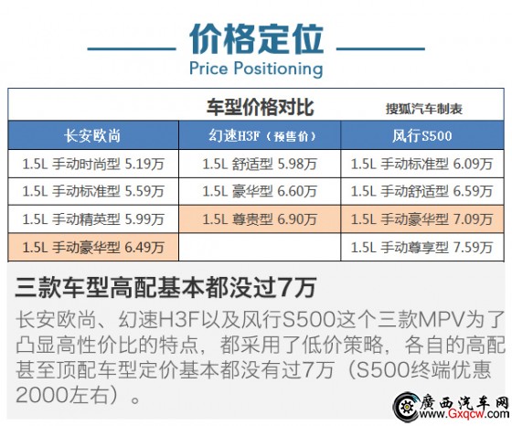 隨著國內(nèi)消費者觀念的轉(zhuǎn)變,MPV車型的關注度也在水漲船高,多款自主品牌車型選擇以低價位切入也讓原本"一家獨大"的局面變?yōu)?quot;百花爭鳴",那么如何最快速的提升產(chǎn)品競爭力呢?眾多自主廠商都不約而同的選擇了"低價高配"的策略,長安歐尚、幻速H3F以及風行S500就是很好地代表,這些不足7萬的自主品牌MPV車型也開始炫起配置來了,到底哪款更值得購買比過才見分曉。