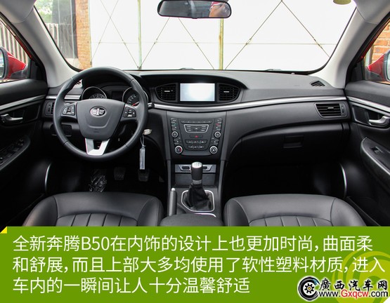 全新B50在內(nèi)飾的設計上也更加時尚,曲面柔和舒展,而且上部大多均使用了軟性塑料的材質(zhì),進入車廂的一瞬間讓人十 分舒適。中控臺空調(diào)和多媒體控制區(qū)域按鍵排布符合大多數(shù)人的使用習慣。雙筒型的儀表盤造型不算新穎,但顯示清晰 可讀性也很高。