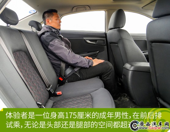 在乘坐空間上,體驗者是一名身高175厘米的成年男性,在前后排試乘,無論是頭部還是腿部的空間都超過了一拳,而且中間的地臺也不算特別的高,對于大多數(shù)人來說都能提供比較舒適的乘車環(huán)境。