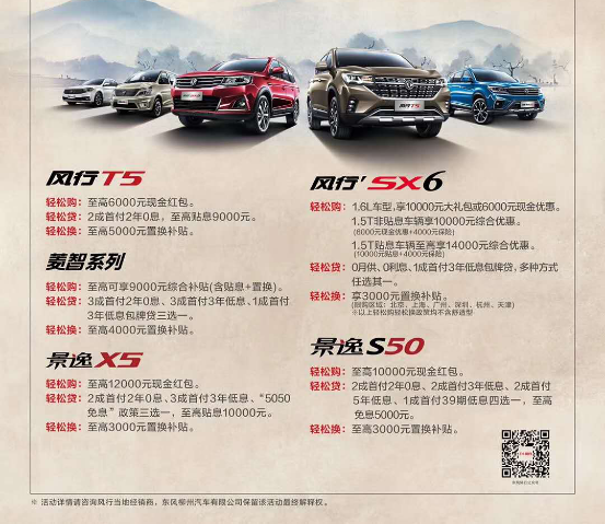 東風(fēng)風(fēng)行品牌積極響應(yīng)國家政策,菱智全系本著讓利惠民的原則推出“汽車下鄉(xiāng)選風(fēng)行”的優(yōu)惠政策,三重大禮,購車即享。輕松購:至高可享9000元綜合補(bǔ)貼。輕松貸:3成首付2年0息、3成首付3年低息、1成首付3年低息包牌貸任選。輕松換:至高4000元的置換補(bǔ)貼。多重福利為廣大老百姓帶來了高性價(jià)比的購車方案,更好的滿足城鄉(xiāng)居民購車需求,降低購車門檻,可謂用心至極。讓更多的專業(yè)市場消費(fèi)者以實(shí)在的價(jià)格買到品質(zhì)好車!