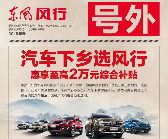 號外號外,為滿足城鄉(xiāng)消費(fèi)者對于汽車的消費(fèi)升級,國家時(shí)隔十年后再次重磅推出汽車下鄉(xiāng)政策,而東風(fēng)風(fēng)行品牌作為人盡皆知的大品牌,率先攜旗下車型積極響應(yīng)國家政策,開展汽車下鄉(xiāng)惠萬家活動(dòng)已將近兩個(gè)月,眾多城鄉(xiāng)消費(fèi)者已加入風(fēng)行大家庭,成為風(fēng)行車主。