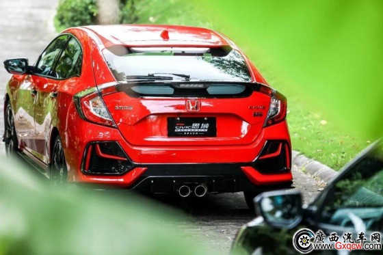 思域Hatchback保留了海外版車型的設(shè)計,兩廂的造型不僅使外形更加緊湊,也讓整體流線形設(shè)計更加流暢。掀背式設(shè)計的車尾配合標(biāo)志性超大的雙C型LED尾燈,動感十足。再加上那極富張力的運動擾流板、“中置雙出” 排氣和超跑風(fēng)格的氣流擴(kuò)散器,從尾部看,除了沒有大尾翼和紅標(biāo)Logo,思域Hatchback幾乎就是一輛Type R。