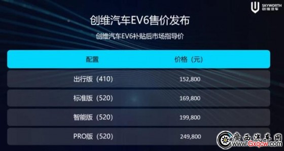 此次發(fā)布會,創(chuàng)維汽車EV6補(bǔ)貼后的市場指導(dǎo)價格定在15.28-24.98萬元這個區(qū)間,除了出行版、標(biāo)準(zhǔn)版、智能版、PRO版四款車型外,還有創(chuàng)享版兩款續(xù)航410和520KM的版本共計6款車型,后續(xù)也將帶來六座版、智混版、長續(xù)航版等車型,以滿足用戶不同的用車需求。