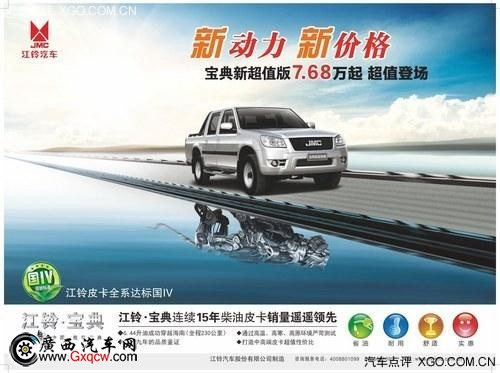 江鈴寶典超值版寶典更是實力超群,據(jù)市場反饋,超值版寶典經(jīng)濟省油、皮實耐用、動力強勁和性能可靠,深受廣大消費者青睞,并且連續(xù)十年以上奪得柴油皮卡銷量冠軍,其良好的口碑,贏得了行業(yè)競爭對手的尊重。
