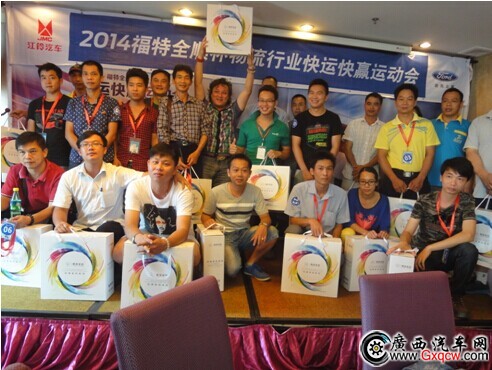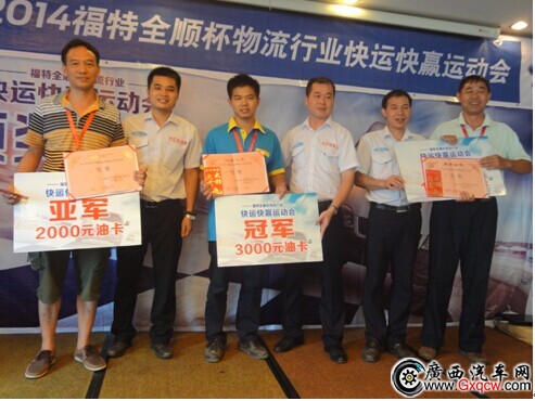 接著,由廣西江鈴品牌經理為比此次全順快運快贏活動冠軍、亞軍及季軍頒發(fā)榮譽**及油禮并合影留念。