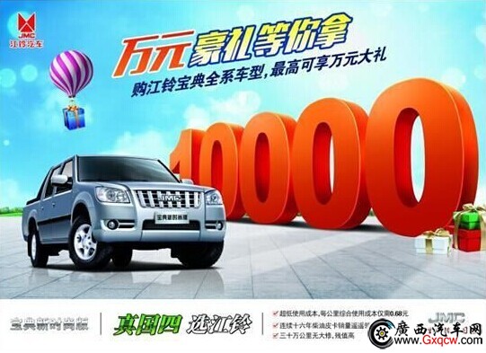 據(jù)獲悉,即日起到江鈴旗下廣西云匯4S店購江鈴皮卡柴油寶典指定車型就有機(jī)會享受*高萬元豪華大禮包,其中現(xiàn)購江鈴寶典新時尚版現(xiàn)金讓利5000元再加砸金蛋 (*高可中5000元維修代金券),購江鈴寶典新超值版參加砸金蛋活動*高可享0.5萬元豪禮。購車皆有禮!“金”喜不斷!歡迎新老客戶來電(店)選購。