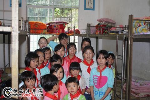 經(jīng)過一個(gè)小時(shí)的互動(dòng),愛車車隊(duì)來到要離開學(xué)校返回百色的時(shí)候了,孩子們站在校門口,依依不舍地?fù)]手告別。