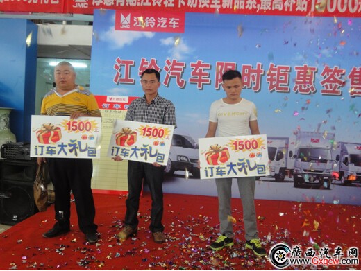 10月25日(周六)江鈴輕卡、江鈴福特全順兩大品牌將于廣西江鈴安吉4S店舉辦簽單會(huì),活動(dòng)期間訂購(gòu)江鈴輕卡指定車(chē)系即享受現(xiàn)金讓利2000元;*高2000元豪禮,購(gòu)江鈴福特全順指定車(chē)系任意車(chē)系即可享受萬(wàn)元豪禮;同時(shí),活動(dòng)現(xiàn)場(chǎng)江鈴客戶朋友們可以享用豐富冷餐、參與有獎(jiǎng)問(wèn)答、參與趣味游戲。*后,江鈴以較好的銷(xiāo)量圓滿結(jié)束此次簽單會(huì),且江鈴伙伴和江鈴客戶朋友度過(guò)愉快地周末。