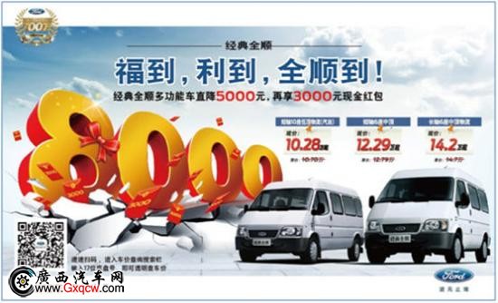 四月到,江鈴福特全順福利到!傾情暖心回饋。即日起至4月30日到廣西江鈴4S店選購經(jīng)典全順多功能系列,可享價格直降5000元,再送3000元現(xiàn)金紅包,讓您盡享非凡禮遇。超值優(yōu)惠價,只為您而來!驚喜上熱線:0771-3119811.