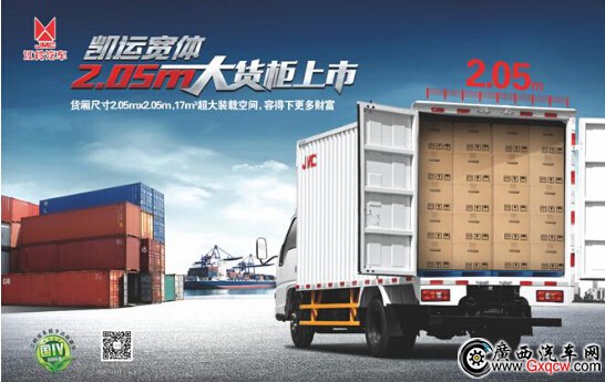 凱運(yùn)寬體憑借省油、耐用、能跑、能裝等優(yōu)勢(shì),凱運(yùn)寬體長(zhǎng)期位居江鈴主銷車型之列。他大肚能容,寬以待人,2.05米加寬貨柜,可并排擺放2個(gè)托盤(pán)貨架,可容納1x1m標(biāo)準(zhǔn)托盤(pán)8只,滿足標(biāo)準(zhǔn)化運(yùn)營(yíng)趨勢(shì),裝卸貨效率提升,跑一趟抵兩趟,賺錢(qián)速度加倍提升。