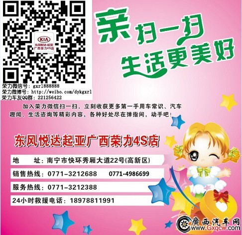 好消息世界杯鉅惠風(fēng)暴 榮力起亞年中沖量超低價(jià)大型團(tuán)購(gòu)會(huì)于6月21日至22日全城惠戰(zhàn)南寧。廠家直銷價(jià),貸款購(gòu)車享0利息,0手續(xù)費(fèi),到店即送1000元,還可參加世界杯游戲互動(dòng),贏取豪禮,買起亞,到榮力,更優(yōu)惠 咨詢熱線:3212688 (高新區(qū)榮力起亞店)