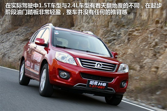 在一個月前本人也試駕了長城哈弗H6 2.4L自動擋,當時2.4L車型給我的**印象則是前半段表現(xiàn)突出,而后半段表現(xiàn)平平,但此次試駕的1.5T車型與2.4L車型有著天翻地覆的不同,在城市路段實際駕駛中油門踏板非常輕盈,靜止狀態(tài)下的油門響應(yīng)相當靈敏,在起步初期由于排量上的劣勢會顯得有一些動力不足,不過好在一檔較長的齒比可以進行很好的彌補,當轉(zhuǎn)速超過1500轉(zhuǎn)后渦輪開始介入,動力也隨之提升,此時會明顯的感覺到一絲微弱的推背感。