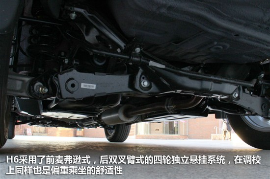 長城哈弗H6采用了前麥弗遜式,后雙叉臂式的四輪獨立懸掛系統(tǒng),在調(diào)教上同樣也是偏重乘坐的舒適性。在通過減速帶或顛簸路面時,懸掛能夠比較好的吸收震動。軟硬相對適中,城市駕駛具有不錯的表現(xiàn)。底盤表現(xiàn)較為扎實,雖然較高的車身使得側(cè)傾相對更為明顯,不過哈弗H6的懸掛表現(xiàn)出了足夠韌性。