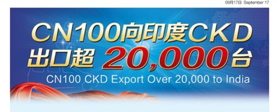 9月13日下午CN100向印度CKD出口超過20000臺慶典儀式在公司新業(yè)務大樓隆重舉行,通用印度總經(jīng)理Lowell Paddock,公司執(zhí)行副總經(jīng)理白雷蒙、副總經(jīng)理姚佐平、副總經(jīng)理胡順華、副總經(jīng)理孔瑞潔、黨委書記周泓、黨委副書記劉存林,以及各部門總監(jiān)、印度項目外派團隊、員工代表共100余人,共同見證了這一激動人心的時刻。
