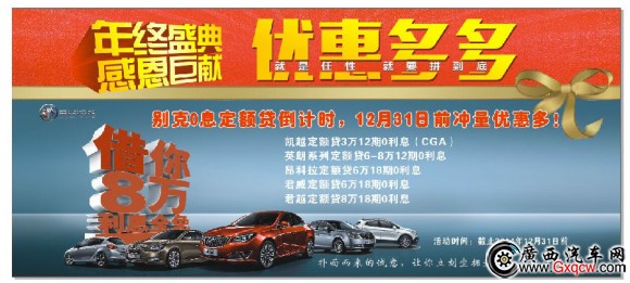小負(fù)擔(dān)大享受,無壓力生活觸手可及!多重金融購車方案助您輕松開別克!心動(dòng)在握,美不再遙遠(yuǎn)。玉林弘通別克汽車18期0息大行動(dòng)金融方案,在2014年12月31日前為您開啟尊享0息禮遇季,讓您極速尊享汽車生活。撲面而來的誠意,讓您立刻坐擁愛車,玩轉(zhuǎn)活錢!