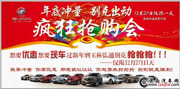 2014年關(guān)將至,您要拿什么與2014告別?別擔(dān)心——想要優(yōu)惠,想要現(xiàn)車過(guò)新年就到玉林弘通別克4S店來(lái)?yè)寭寭專e克全系車型年末沖量,2014年12月27日*后一波搶購(gòu)即將開啟,現(xiàn)金優(yōu)惠與金融政策等多重購(gòu)車驚喜等著您,就差一點(diǎn)點(diǎn),等您來(lái)?yè)屬?gòu),搶到就是賺到,機(jī)會(huì)不容錯(cuò)過(guò)!詳情請(qǐng)咨詢:0775-2295666.