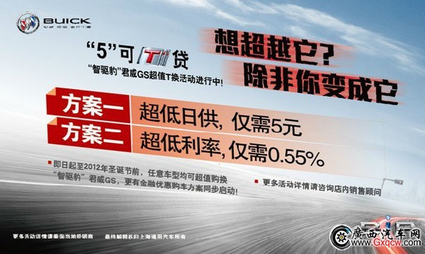 近日,玉林弘通別克4S店聯(lián)合上汽通用金融公司推出*新的貸款購(gòu)車政策――別克君威“5”可T貸。針對(duì)君威T車型推出日供5元或超低利率0.55%的金融促銷活動(dòng),只要您有不低于三個(gè)月的良好信用記錄及本地房產(chǎn),僅需交納車款50%的費(fèi)用就可以輕松擁有別克君威,“省下來(lái)”的50%可以在您手里用一年,這中間是只要交納很少的月供和利息,真可謂是實(shí)惠“5”可“T”貸,輕輕松松提前擁有超越同級(jí)別的高配置車輛! 詳詢電話:0775―2295666