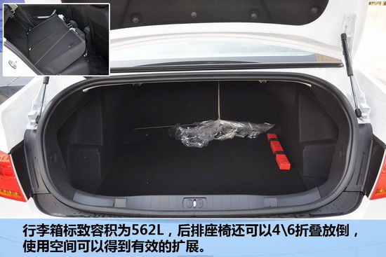 前排扶手箱為單層設(shè)計,扶手可以上下調(diào)教高度,儲物空間并不算大,放不下太多東西。手套箱內(nèi)部比較深,不過實際使用起來不是很方便,門板上有許多小格子,能把不同類的物品分開存放。行李箱標(biāo)致容積為562L,后排座椅還可以46折疊放倒,使用空間可以得到有效的擴(kuò)展。