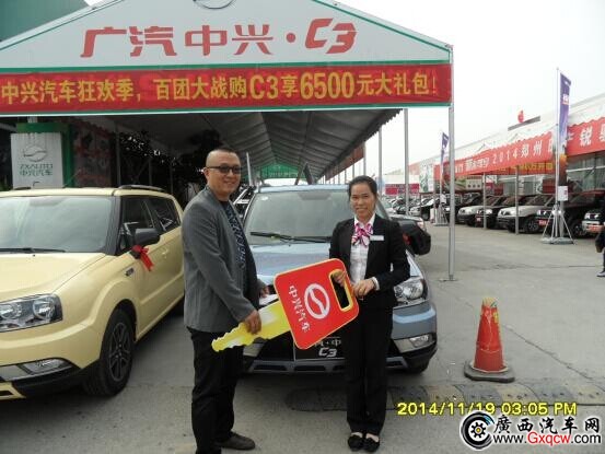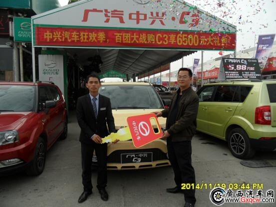 為了答謝廣大消費(fèi)者對(duì)“廣汽中興狂歡季 百團(tuán)大戰(zhàn)購(gòu)C3”活動(dòng)的大力支持,南寧駿鴻達(dá)特推出“廣汽中興C3每天一款特價(jià)車”的活動(dòng)。從2014年11月12日起至2014年11月30日每天推出一款特價(jià)車:包牌價(jià)只要59800元,就可以把廣汽中興C3開(kāi)回家!