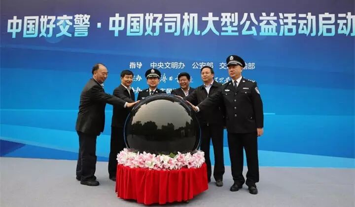 儀式上,東風汽車公司總經理、黨委副書記朱福壽先生與眾位嘉賓一起,共同觸摸水晶球,啟動“中國好交警·中國好司機”大型公益活動以及活動專題宣傳網頁。