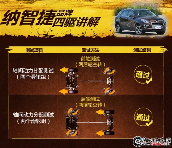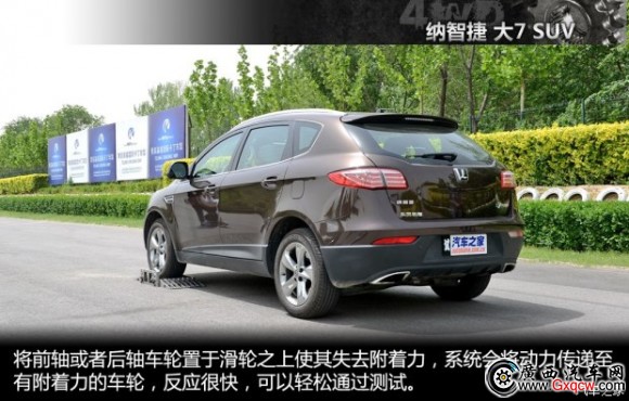 如果單看納智捷 大7 SUV的四驅(qū)能力,它并不強(qiáng),僅僅能通過簡單的前后軸動力分配測試,由于沒有輪間限滑機(jī)構(gòu)和電子輔助限滑,所以交叉軸等難度高的項(xiàng)目它是無法完成的。就產(chǎn)品而言,大7是一款面向城市的SUV,空間舒適性和豐富的配置才是*大賣點(diǎn),至于四驅(qū)性能,對于大7來說這不是核心要點(diǎn)。