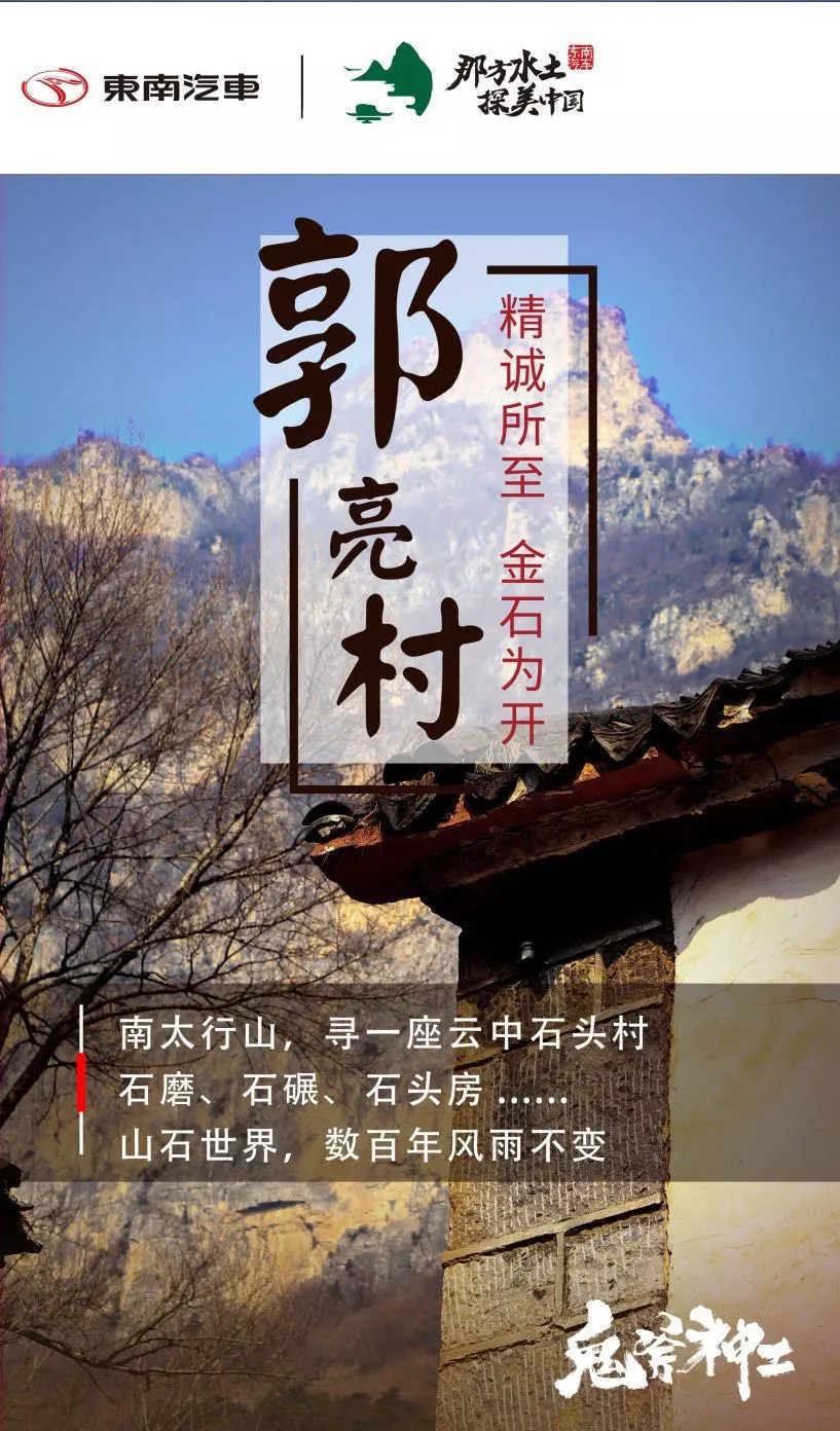 巍巍太行,壯哉郭亮!壁立千仞,雄壯蒼茫,郭亮村就是太行山懸崖上生出的璀璨明珠。為了觸摸這座古村落跳動(dòng)的脈搏,3月8日,東南汽車在郭亮村開(kāi)啟了2018年“那方水土 探美中國(guó)”的序幕。