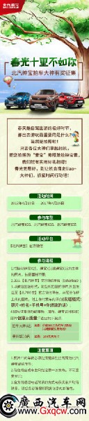 春光十里不如你| 北汽紳寶拍車大神有獎?wù)骷?br>來源:北汽南寧新源店    發(fā)布時(shí)間:2017年04月19日