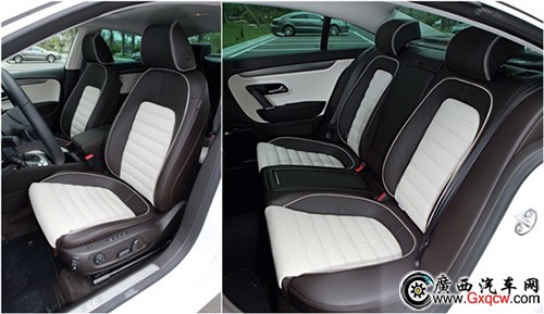 CC的內飾設計采用了全新設計的顏色組合,其中CC 3.0 V6流沙金版本的內飾采用了黑色打孔真皮配合金色鑲邊,而CC 3.0 V6朱鷺白版本則使用更富動感的深棕配合白色打孔真皮附以白色鑲邊的設計。
