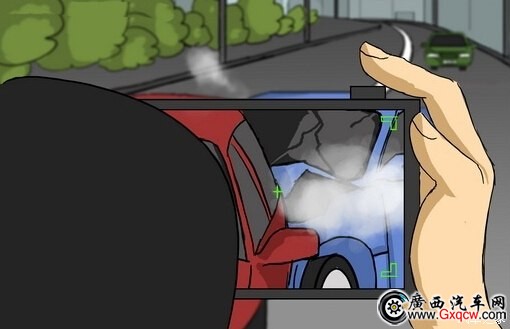 2.拍照。照片是快速處理中非常重要的證據(jù),照片要求有一張能說明事故現(xiàn)場(chǎng)情況的照片,一張可以說明事故發(fā)生地點(diǎn)的全景照片以及若干張車輛發(fā)生接觸部分的特寫照片,**把當(dāng)事司機(jī)與車輛的合影也拍攝下來。