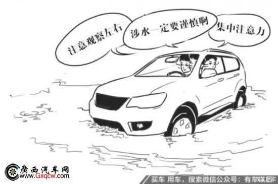 如必須要開車涉水通過,最簡單的辦法就是觀察前車通過的路線和速度,比較一下看自己的車能不能順利通過。