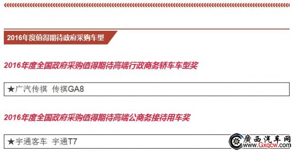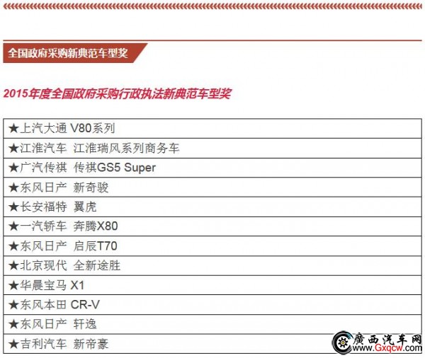 公商務(wù)用車不同于個(gè)人用車,所以對(duì)車型的評(píng)選也有差異,重點(diǎn)考慮公商務(wù)用車的需求和市場表現(xiàn)。通過“政府采購信息網(wǎng)”和“政府采購信息”官微的 投票以及15位全國政府采購汽車專家的現(xiàn)場評(píng)審,在眾多參選車型中最終選出大家心目中的政府采購車型。本屆年會(huì)隆重揭曉了“2015年度全國政府采購汽車 類獎(jiǎng)項(xiàng)”和“2016年度的期待車型”。