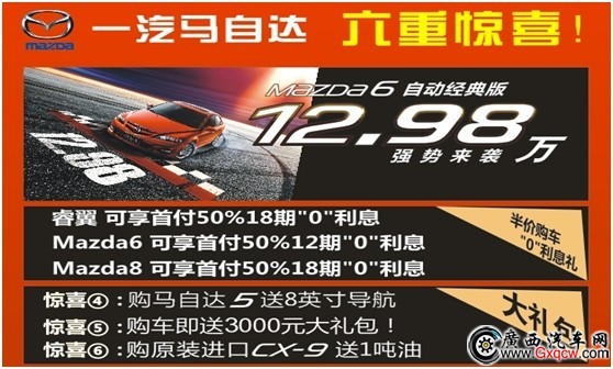 驚喜二:2014款馬自達6巔峰上市,無敵自動擋車展特惠僅需12.98萬,0利息無憂貸購;