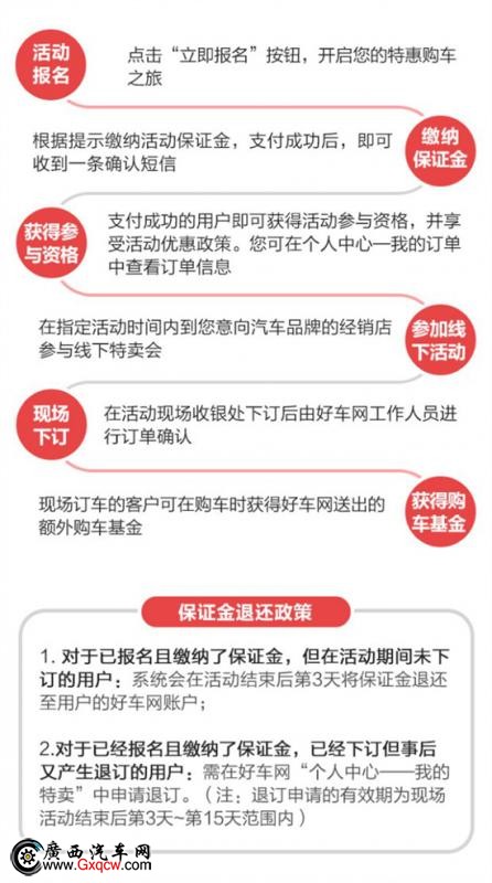 6、【好車(chē)助陣禮】:所有線上支付199元意向金的客戶(hù),現(xiàn)場(chǎng)購(gòu)車(chē),都可獲得好 車(chē) 網(wǎng)送出的500元購(gòu)車(chē)基金!